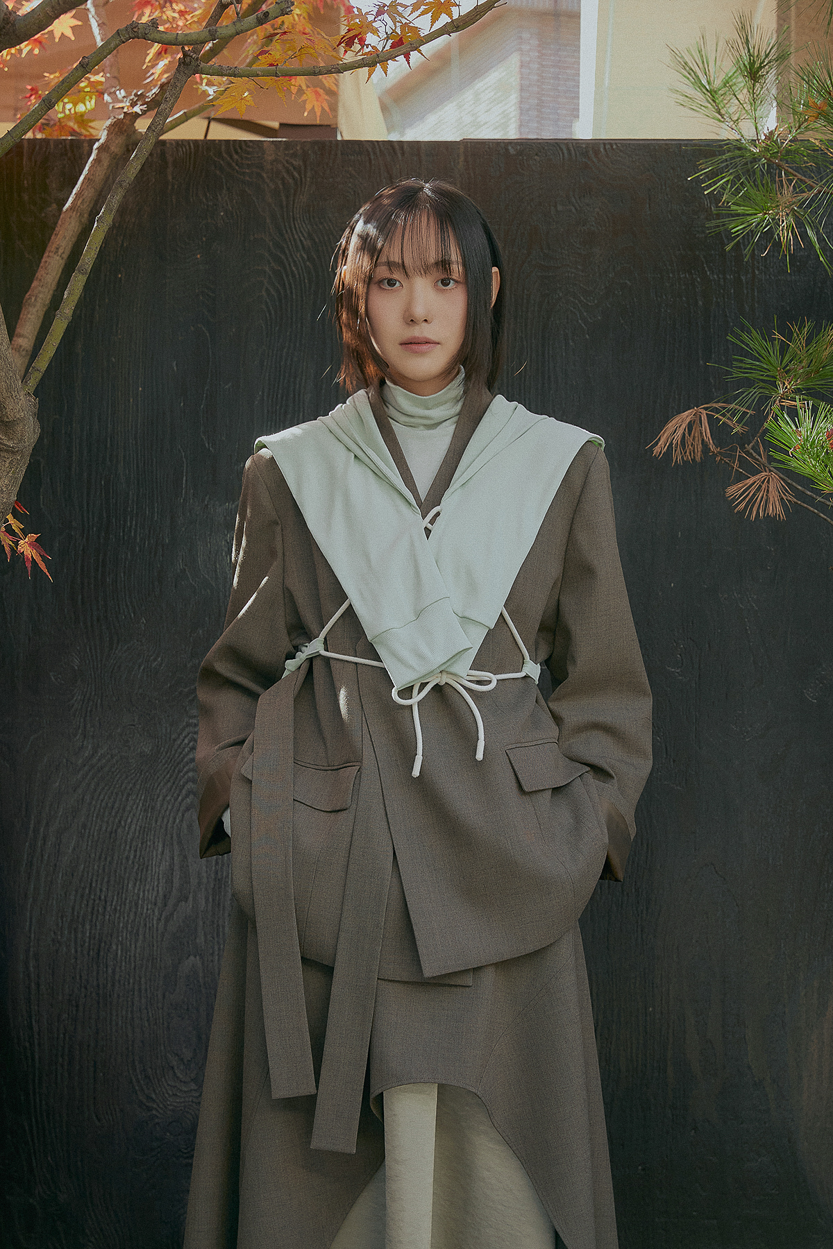 이번 컬렉션의 아이템들은 궁중, 궁궐에서 영감을 받아 디테일을 발전시켰습니다. 겹겹이 쌓인 레이어드는 차경(借景 경치를 빌리다)을 뜻하고 각 아이템의 이름은 성군으로써의 덕목을 담았습니다.