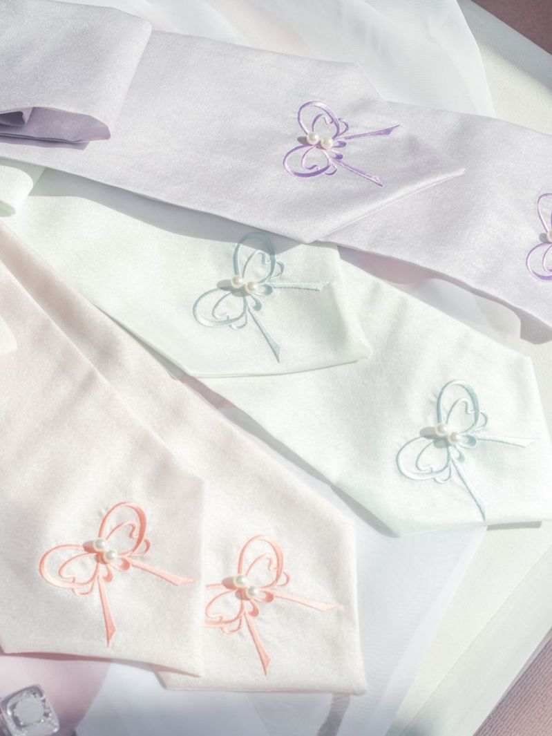 사랑스러운 리본의 형태로 재해석한 자수와