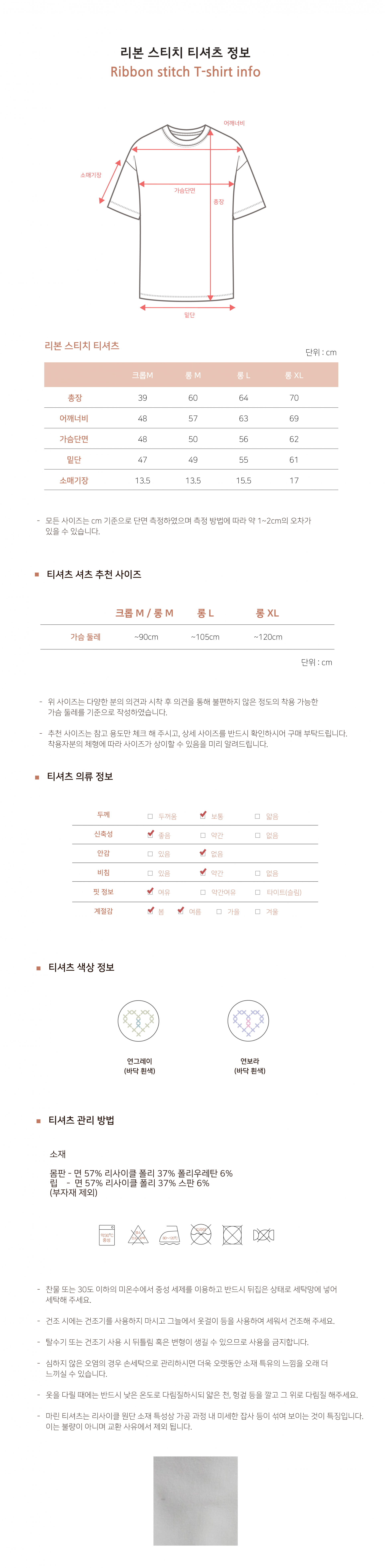 이번 시즌 새로 디자인 된 리본 스티치 티셔츠는