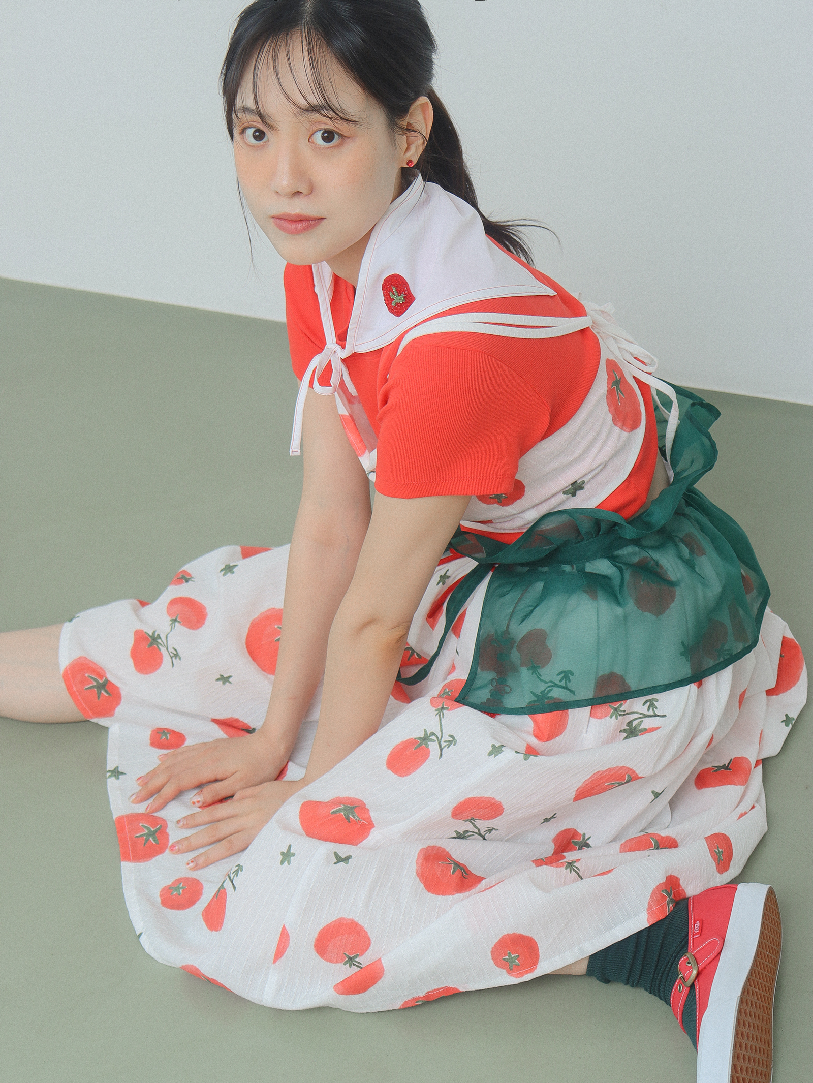 기와 뷔스티에 (토마토) M / 겹기와 허리치마 (토마토) L 착용