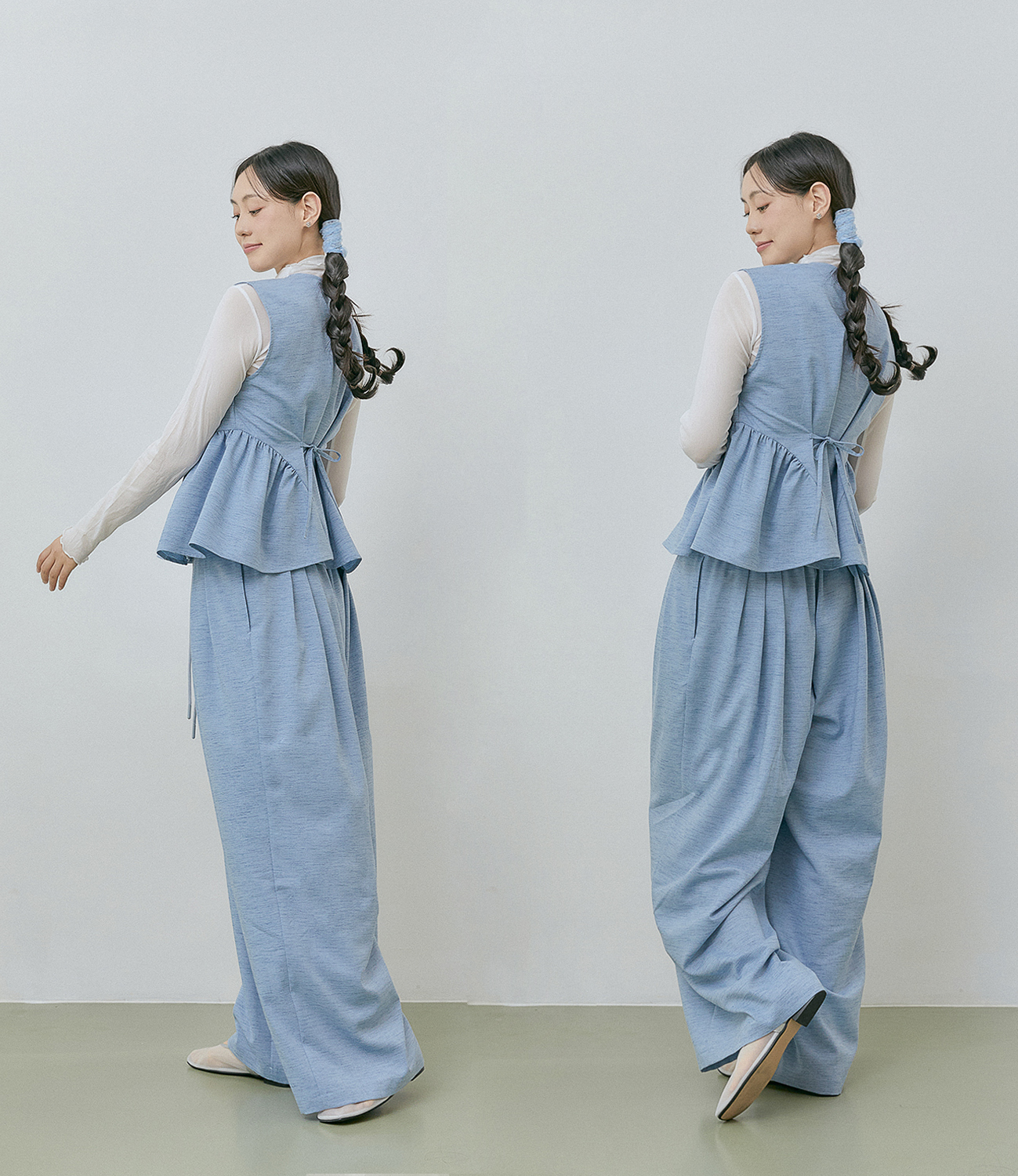 구름 베스트 (하늘) L / 주릿대 팬츠 셋업 - 너른 바지 단독 (하늘) L 착용