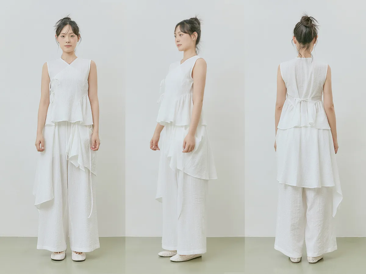 구름 베스트 (백색) M / 주릿대 팬츠 셋업 (백색) M 착용