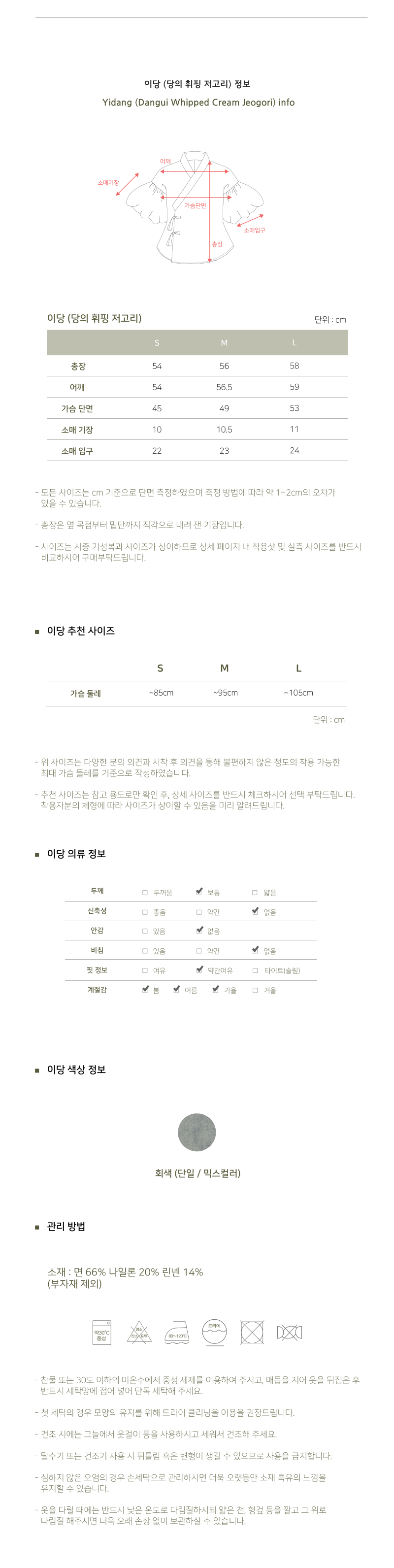 166cm, 44 사이즈 (S사이즈)