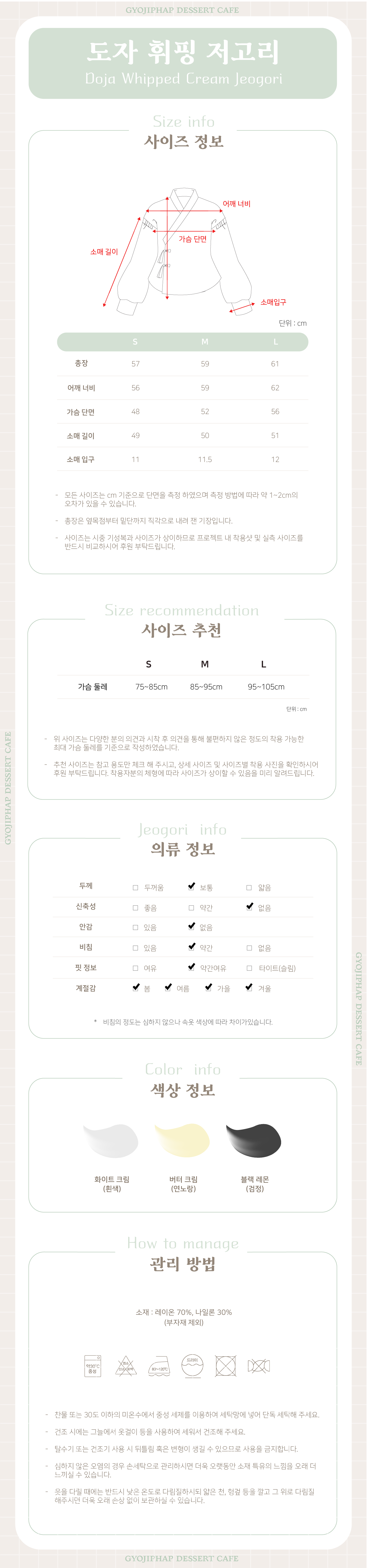 도자 크림 휘핑 저고리 버터 크림(연노랑) M
