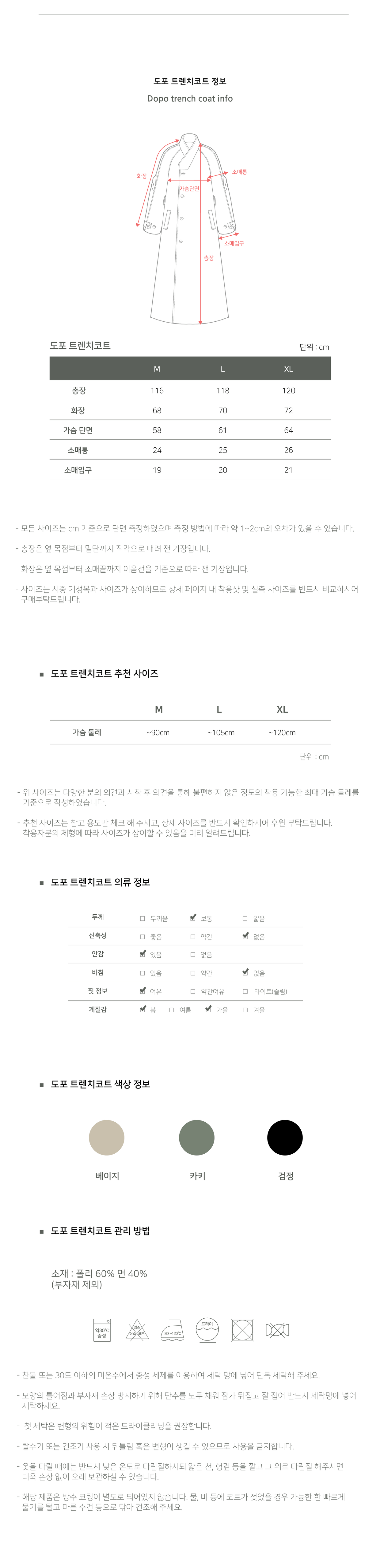트렌치의 소매와 벨트는 착용자분의 사이즈에 맞춰
